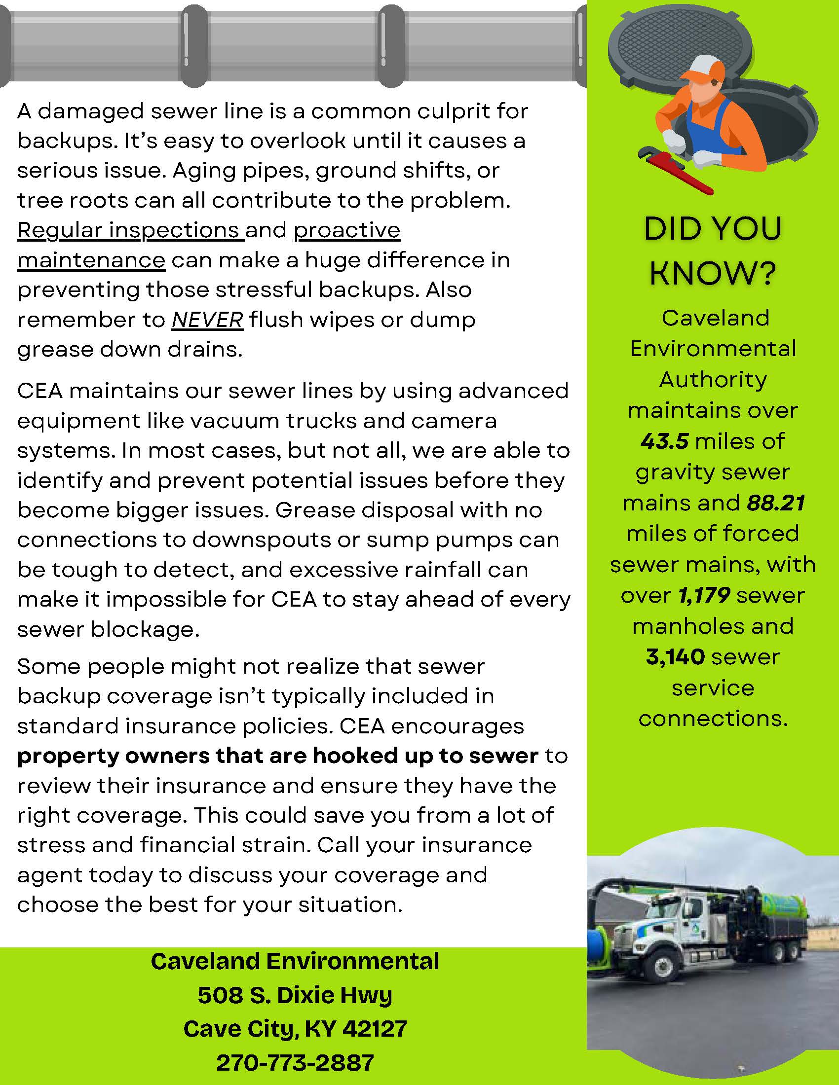 A once per calendar year billing adjustments may be requested by contacting our office at (270) 773-2887 if the customer has experienced excessive usage outside of his or her normal range due to leaks, bathroom fixture malfunctions, pipe breakage, etc. Proof must be provided from a licensed plumber indicating that a failure has occurred and that repairs have or are being made. Bill adjustments are at the sole discretion of CEA, Inc. and must be approved by the CEO. CEA, Inc. is ONLY responsible for maintaining meters and the water and wastewater equipment beginning at tap location and extending outward towards the main line(s) directed away from a customer’s privately owned lot. It is the customer’s responsibility to contact a licensed plumber to investigate and correct any other issues that may be related to the plumbing and fixtures located on his or her property.